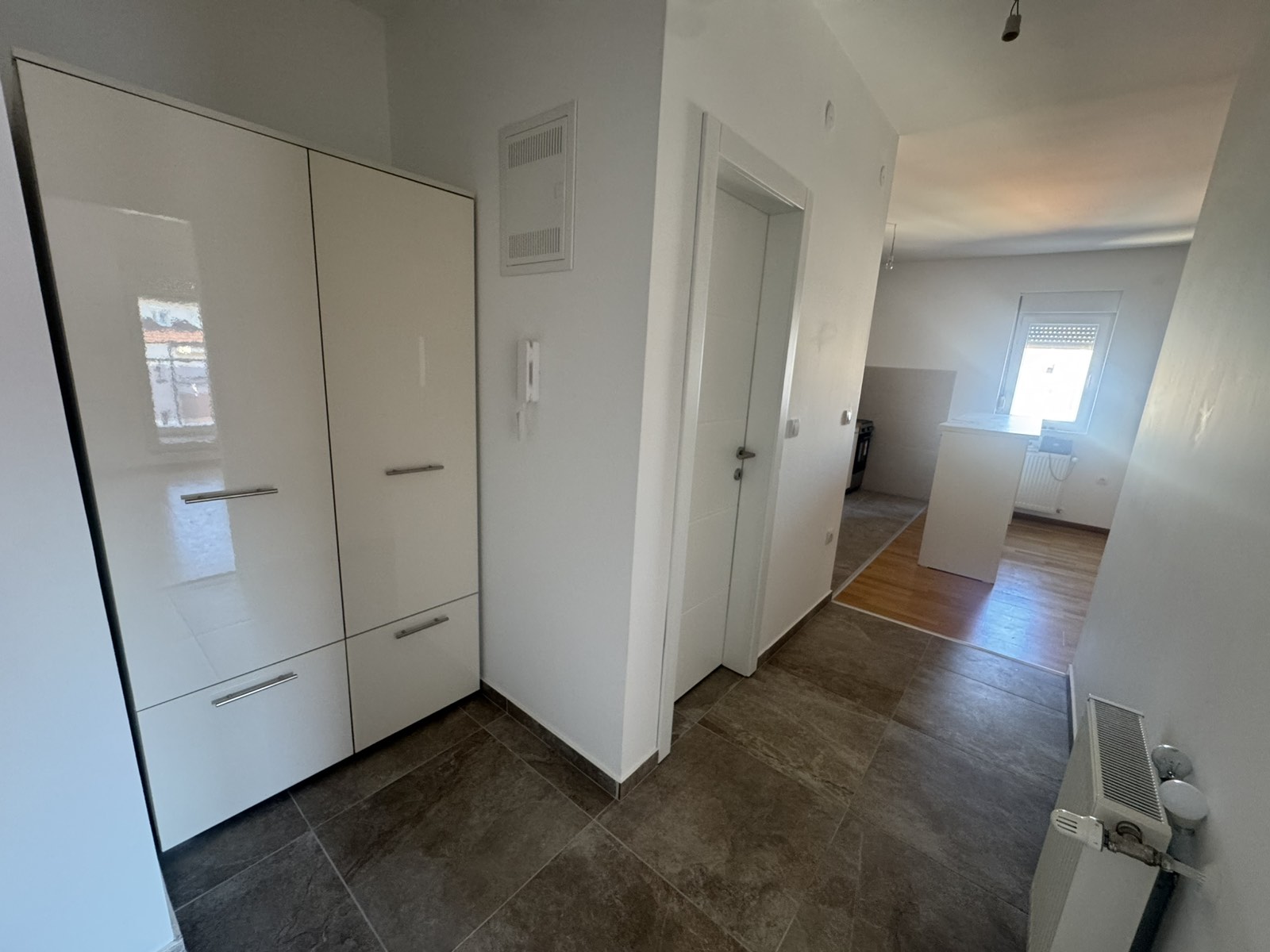 Stan ima prostranu dnevnu sobu sa kuhinjom i trpezarijom, dve spavaće sobe, hodnik, kupatilo i odvojeni toalet, sa velikom terasom.